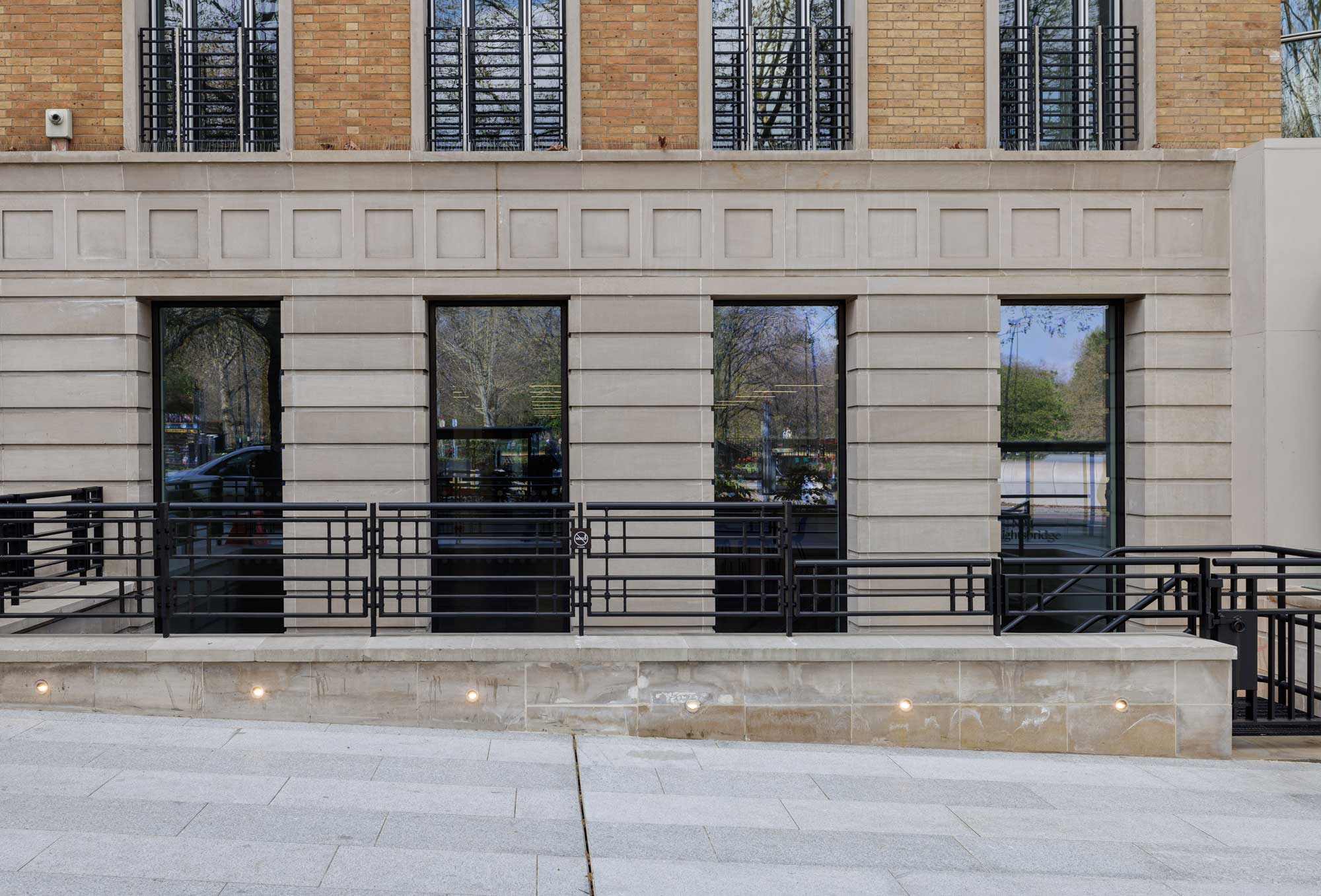 For the interior of the building, we designed, fabricated and installed bespoke curved metal and glazed balustrades in a number of areas, with the surrounding metalwork clad in the same phosphor bronze as the external work.